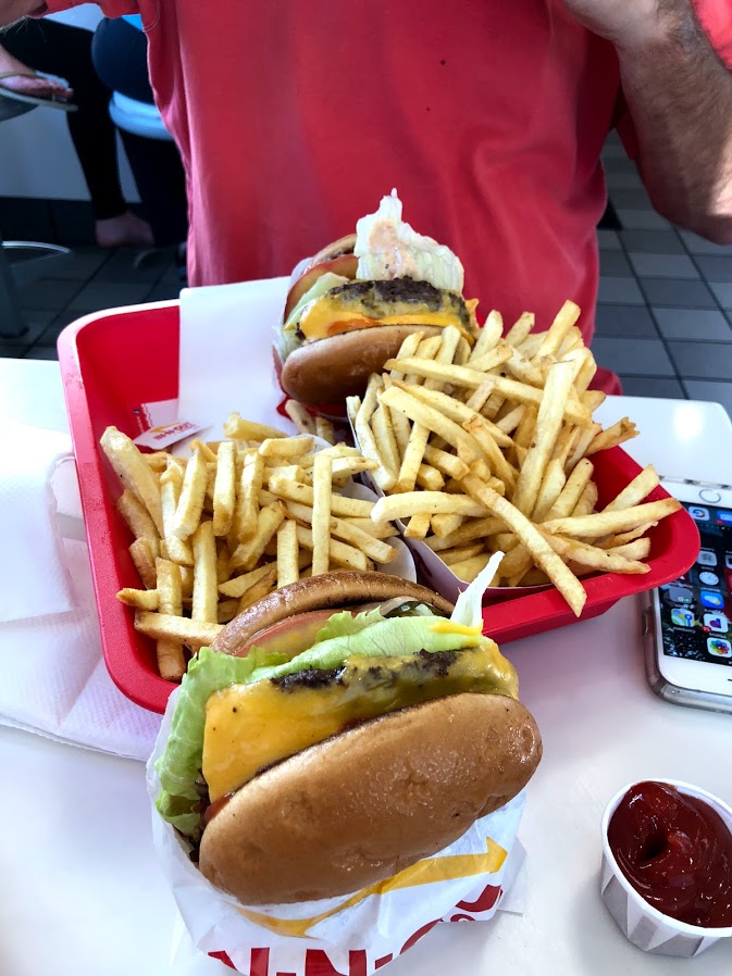 After we came back from Half Moon Bay we stayed at the Marriott by the airport for our early departure back to Atlanta. We walked down about a mile to have our favorite burgers from In-N- Out burgers before leaving California.