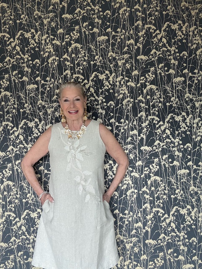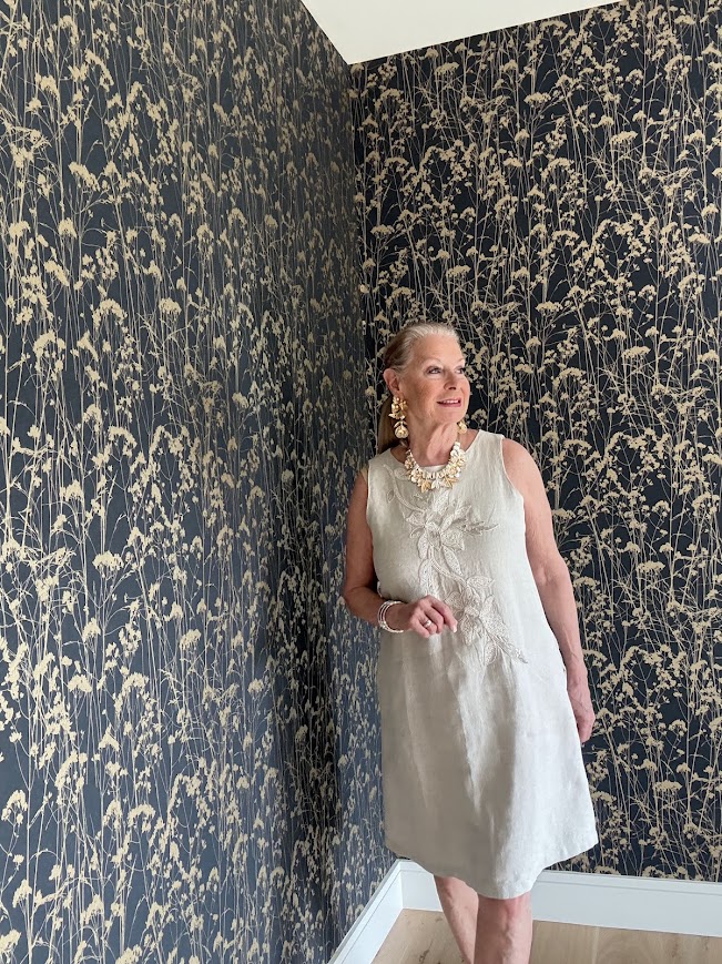 The story behind the wallpaper. We recently purchased a new home in Park City, and as much as I love wallpaper, this wallpaper would clash with the art and family photos I plan to display in this sitting room. It was removed, but I wanted to shoot the linen dress against the wallpaper. Moving forward, you will be seeing glimpses of our new home when I shoot in Park City. We have been searching for a larger home in Park City for a couple of years, but it was difficult to say goodbye to the home I renovated during the COVID-19 pandemic with my husband. I wrote about it here.