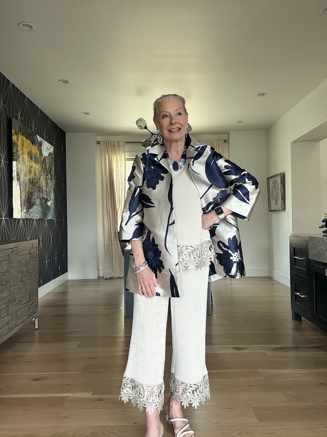 After viewing the “How to Wear It” feature for the jacket on the Chico’s website, I thought I would style the jacket with the Travelers Lace Trim Tank and the Travelers Lace Trim Cropped Pants.