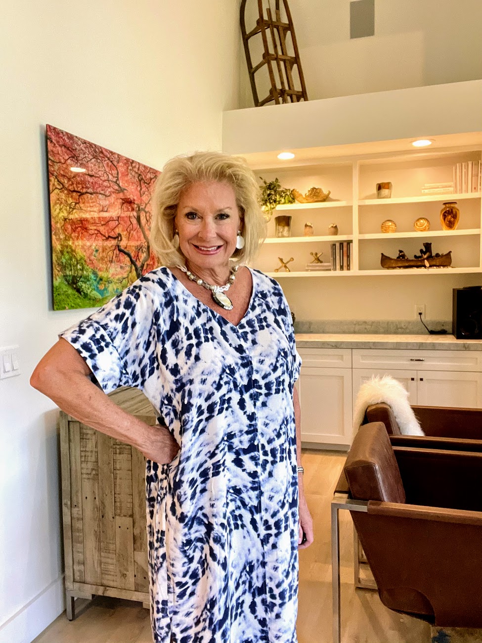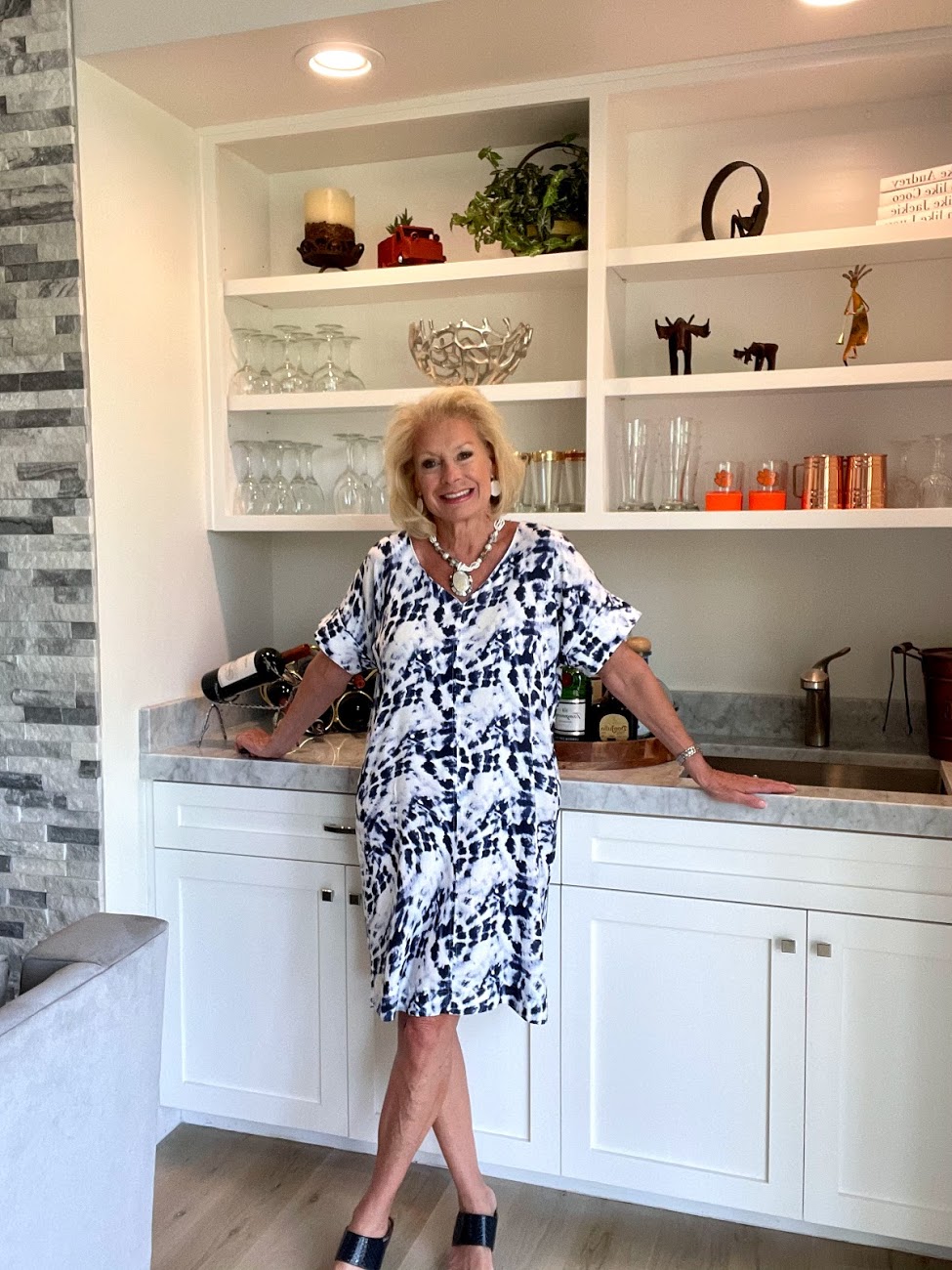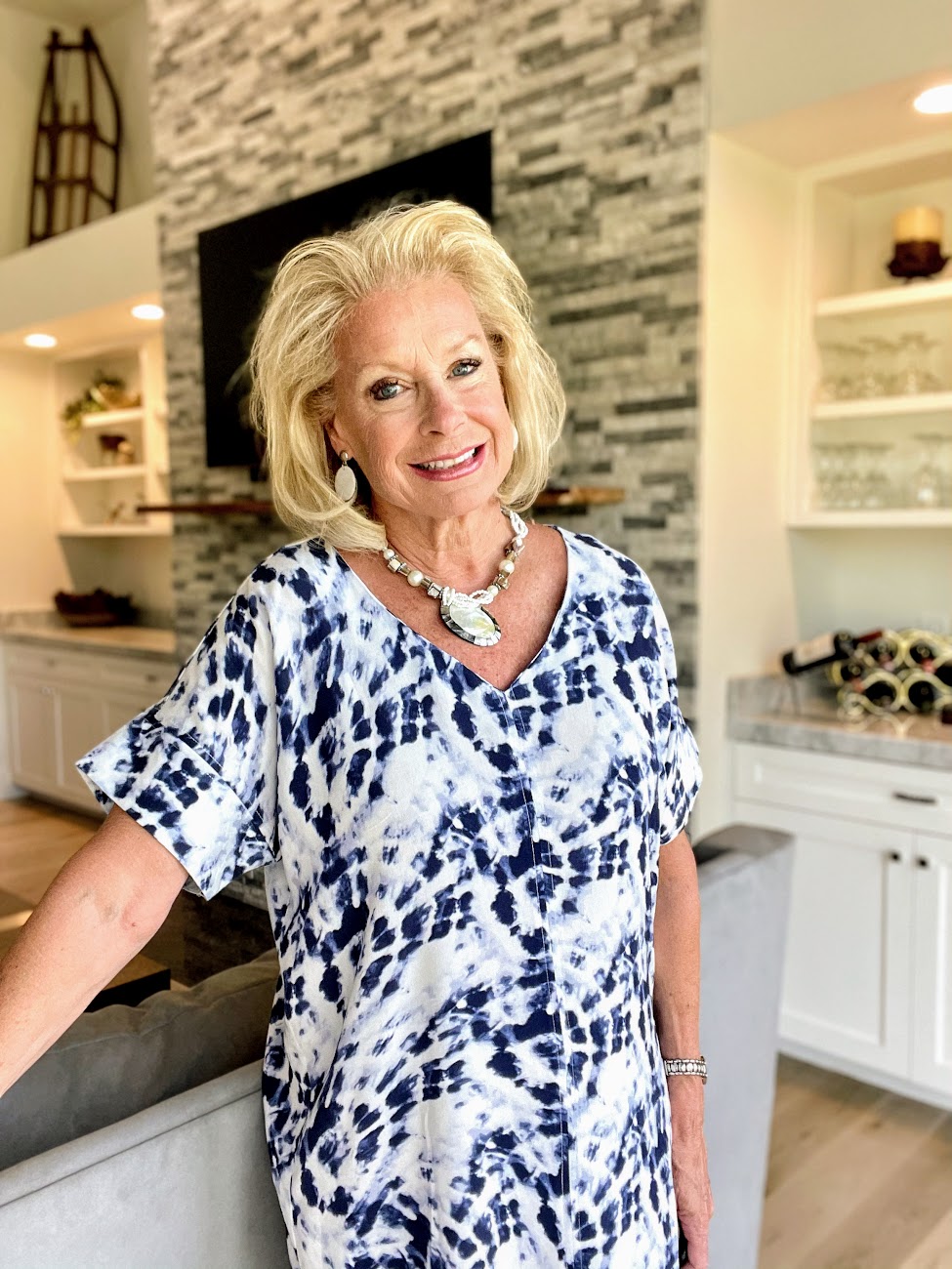 This fun blue tie-dyed Shift dress is perfect for a casual wedding or anytime you want to wear a dress. Tie-dye fashion is so popular with young girls this summer but it’s also perfect for girls over 50! In fact, we were the first to embrace tie-dye fashion! I wonder if we should tell them that we wore it first?