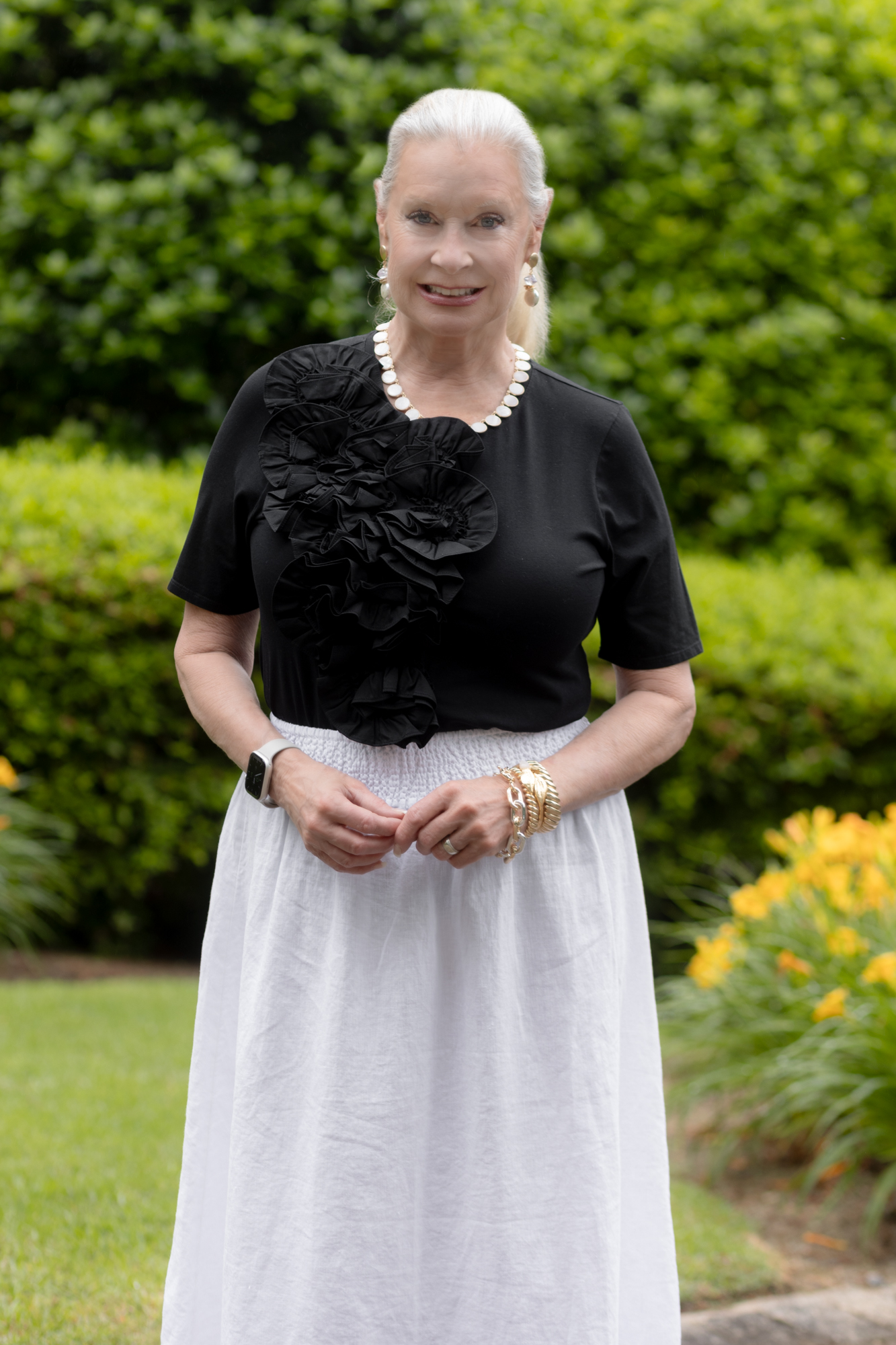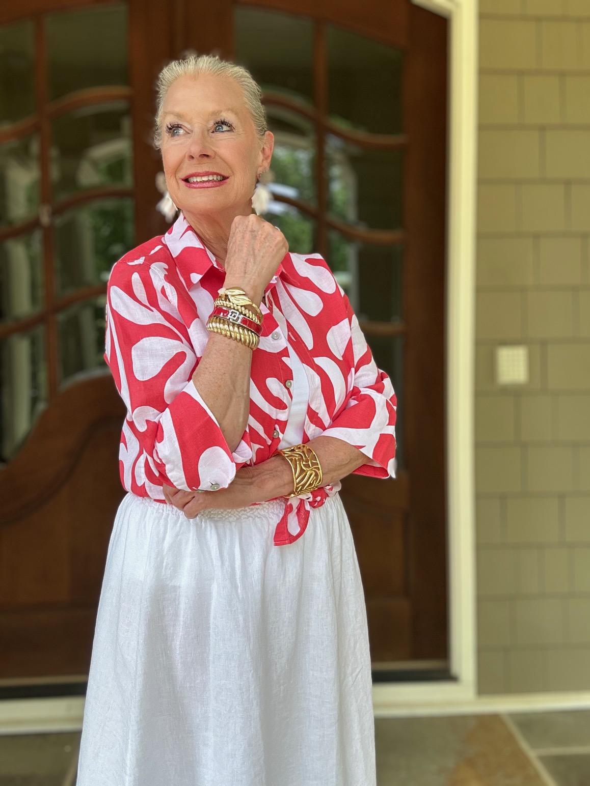 Welcome to June! Sorry that I haven’t been posting, but we were with our family in Saint Augustine Beach for Memorial Day weekend and just returned home. I will share photos I took on the beach soon. If you’re like me, many of you have special occasions and weddings this month, from celebrating 37 years of marriage to heading out to Rhode Island for a wedding. Many of the weddings are being held outdoors this month, and many are not formal ones. That is why I thought I would share three ways to style a white linen skirt for your next special occasion.