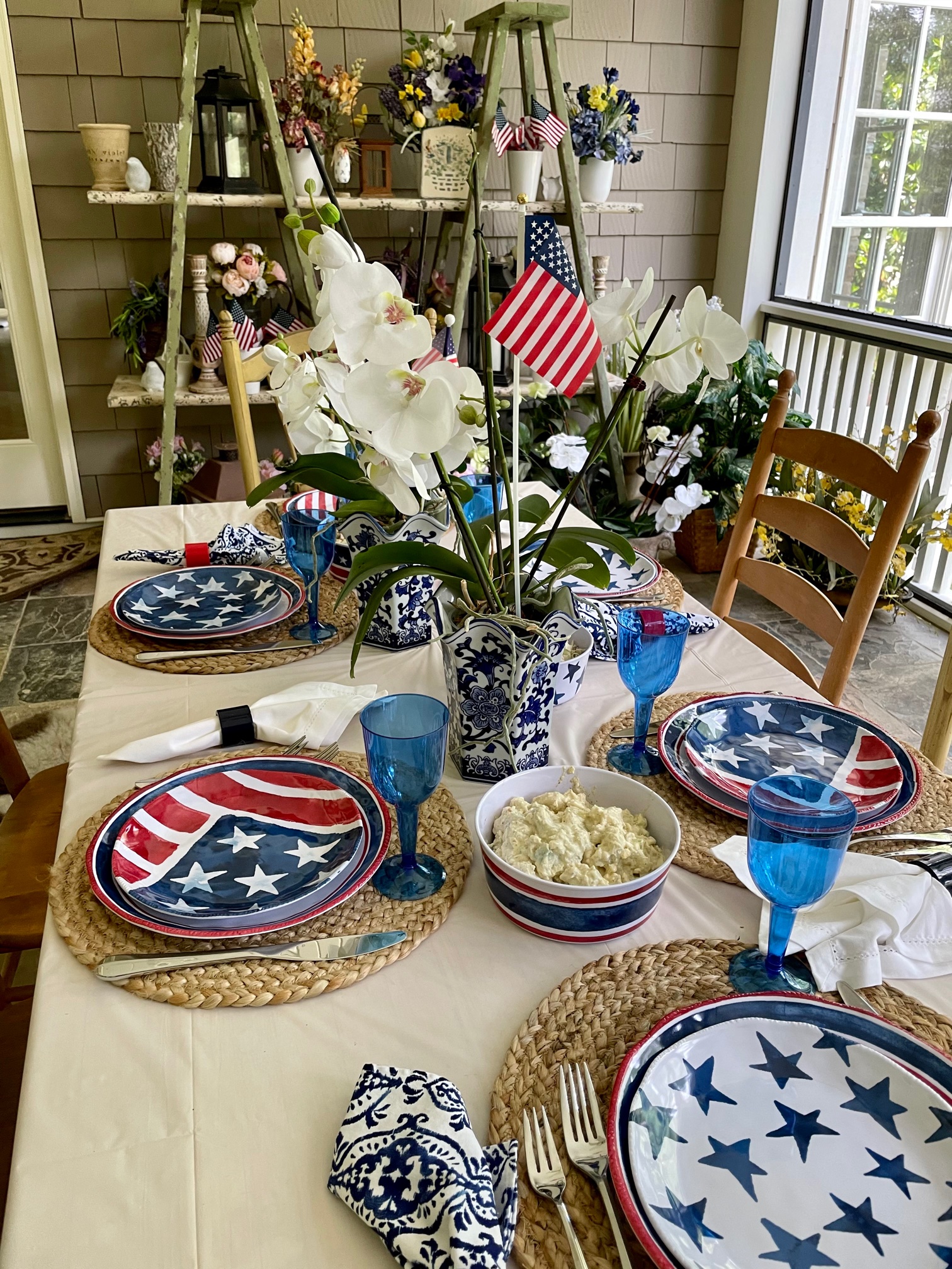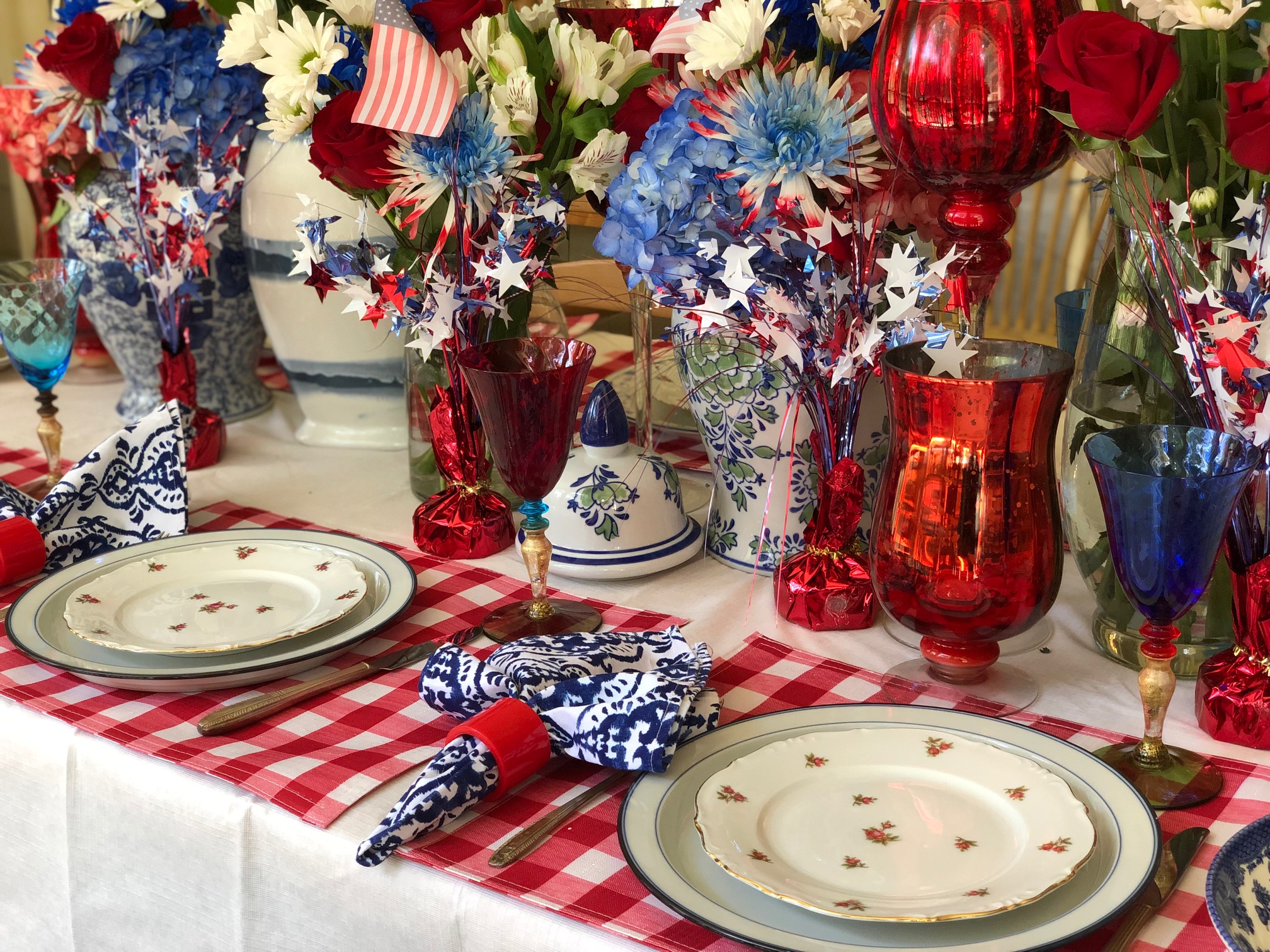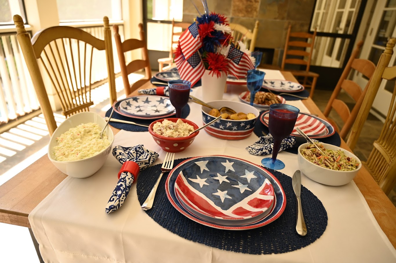 I’m reusing all my patriotic decor from Michaels, and the dinnerware was featured in this post.