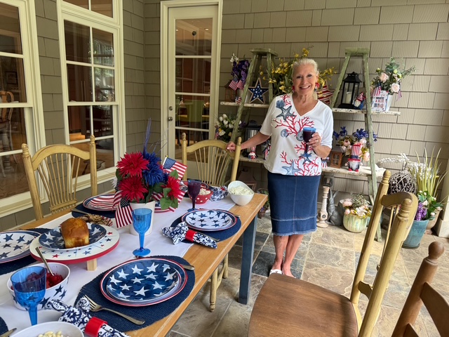 I love the 4th of July. Our children will be with us on the 4th—one of the most leisurely holidays for me to entertain and cook. I’m keeping it simple with burgers and dogs on the grill. However, I am going to be star-spangled and sparkly for a holiday!