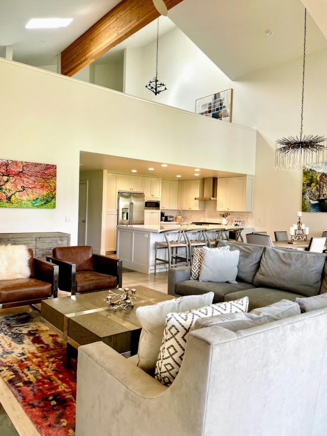 When experimenting with different furniture arrangements, consider creating conversation areas and monitoring the traffic flow. While you don’t want people tripping over your pieces because they’re too close together, you also want to ensure people can comfortably talk to each other without yelling or leaning in too much. It’s all about finding balance! If you’re unsure where to start, interior designers can help you determine which layout works best for your needs and space.