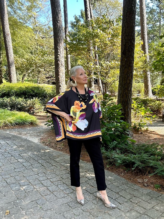 Since I was the emcee of the conference I wanted to make sure that I was comfortable and stylish. This Floral Print Poncho was perfect to wear all day long at the conference and out to dinner. I wore my Brigitte Basic Slit Ankle Pants to go with the poncho. The Marble Triangle Drop Earrings played off the black and white zebra banding on the poncho. The Beaded Bib Necklace was a great statement necklace that went with two of my outfits.