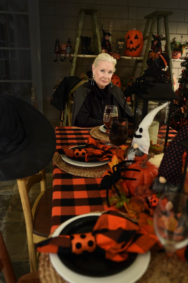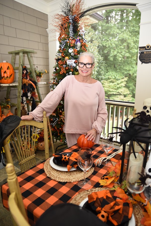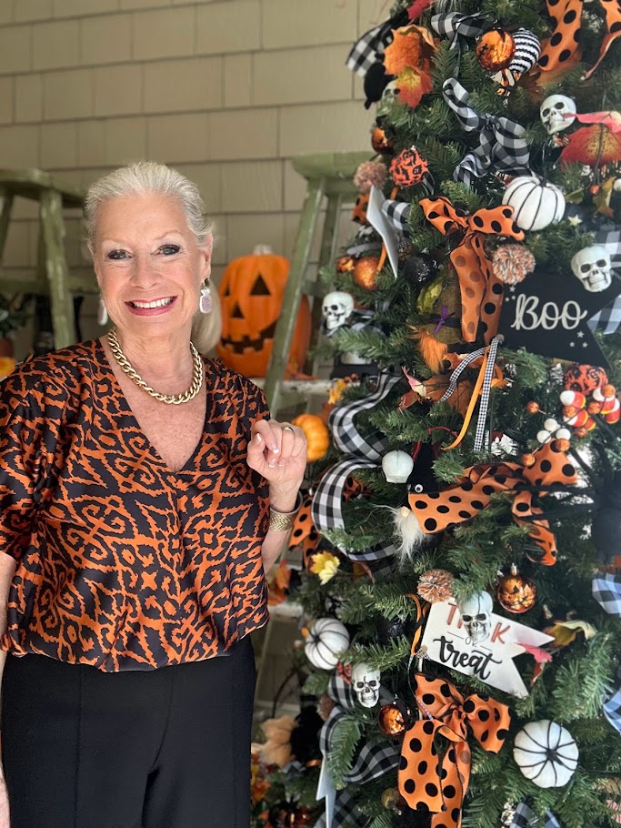 Wearing a Chico’s top that I got on sale with my wide-legged pants also from Chico’s. Unfortunately, the top is sold out but it is perfect for Halloween!