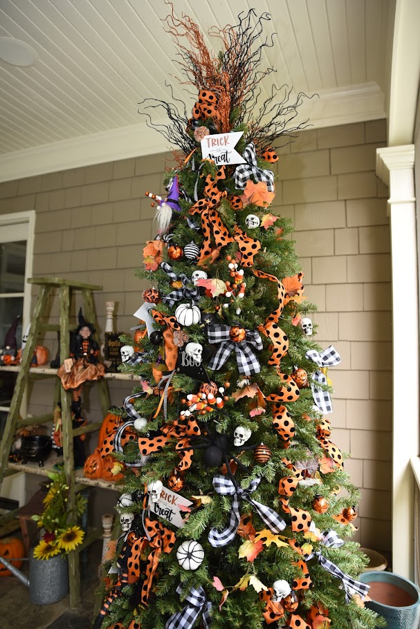Ladies, have you ever decorated a Christmas tree for Halloween? It’s a great way to put up your tree before you start decorating it for Christmas. This King of Christmas tree is a perfect Halloween decoration for my Halloween party.