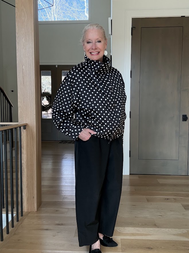 Wearing: Polka Dot Cropped Jacket, Yoga Pants, and flats. All from Amazon.