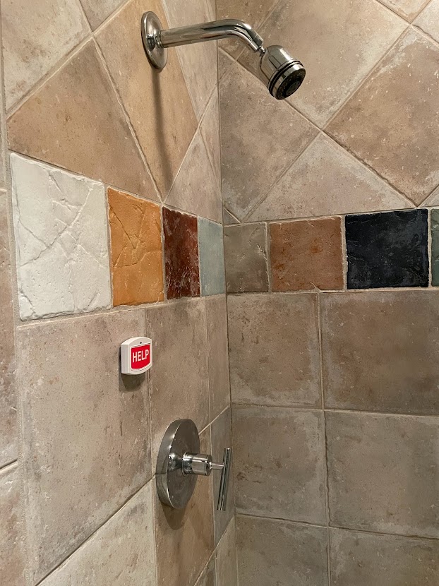 Bay Alarm Medical’s water-resistant wall buttons come with adhesive mounts. The wall buttons are handy for high-risk areas like the shower or stairs. Place them low on the wall where they are accessible if you fall in the shower.