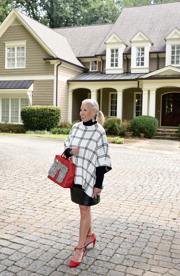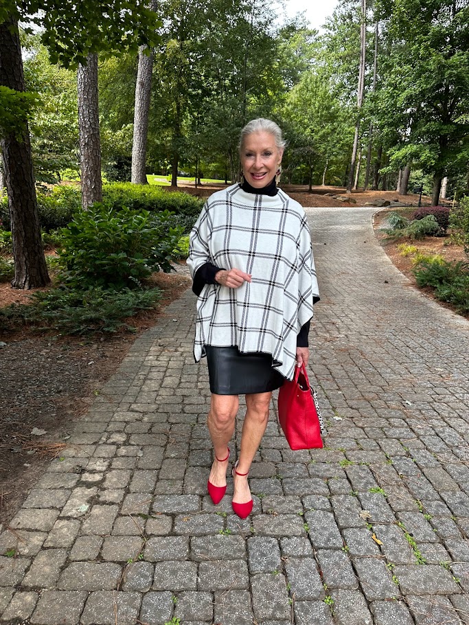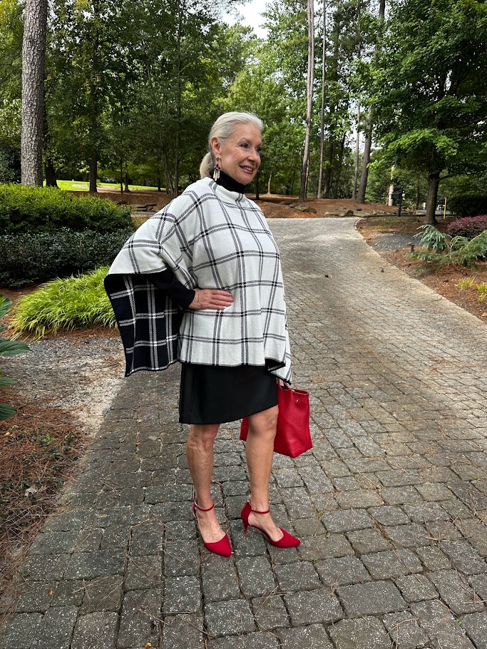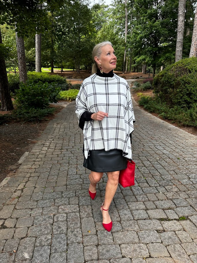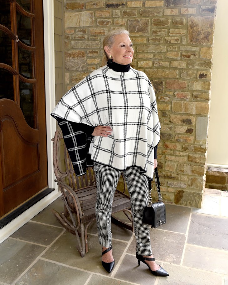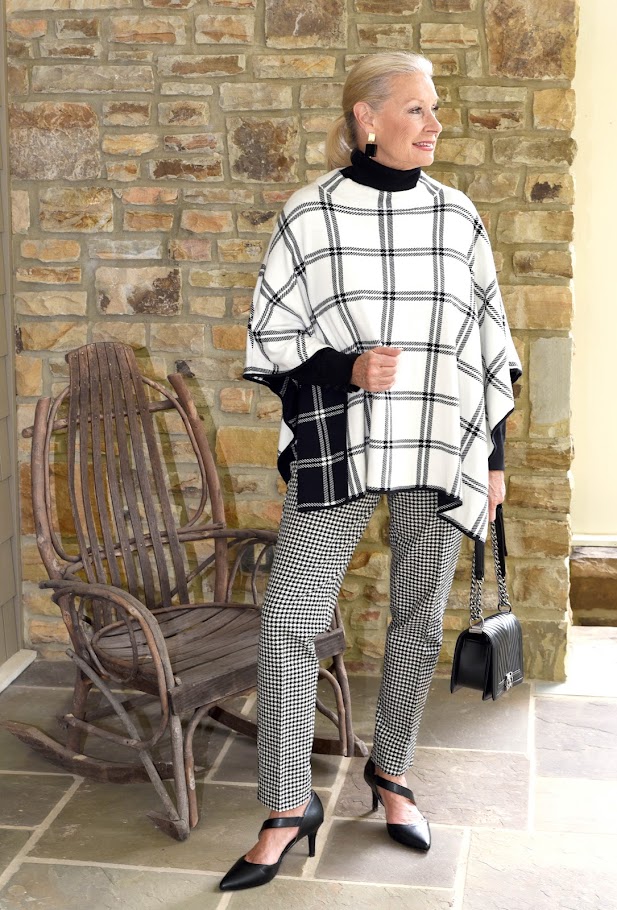 When the weather calls for an extra layer how about this Windowpane Funnel Neck Poncho from Talbots.