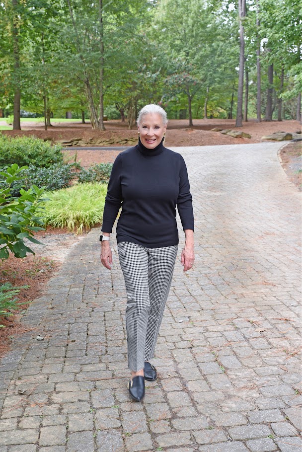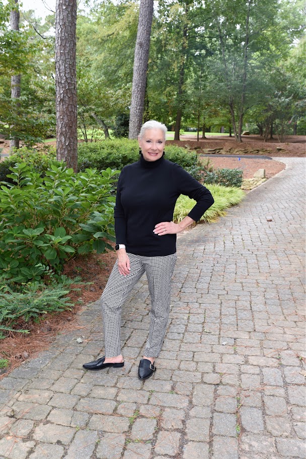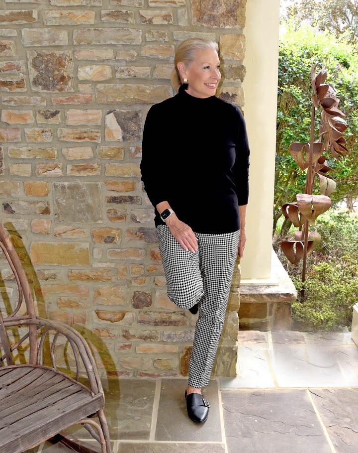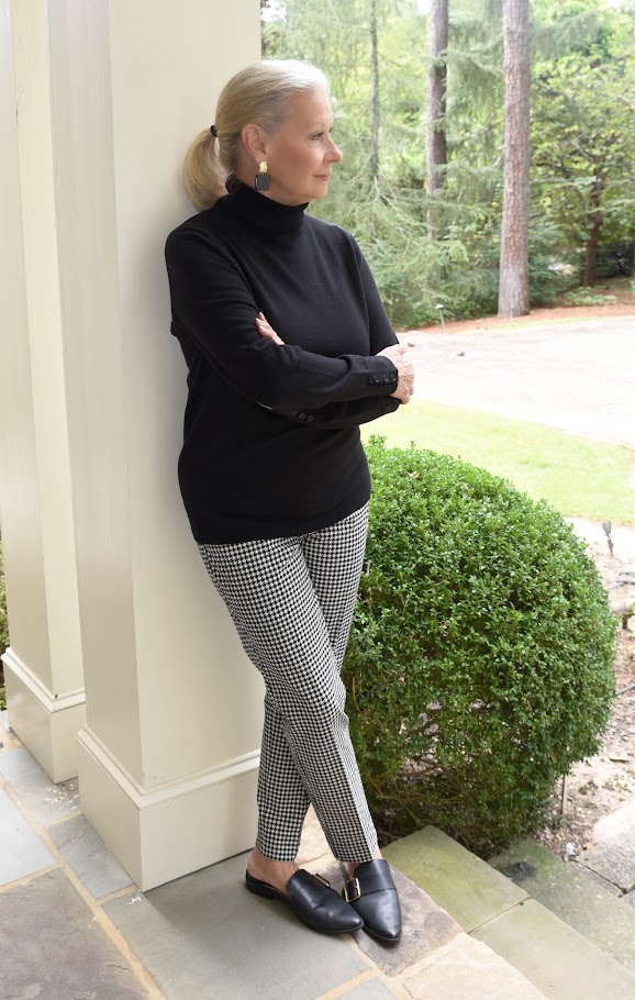 What is more classic than a black turtleneck and black flats with the houndstooth pants? Simple and effortless style.