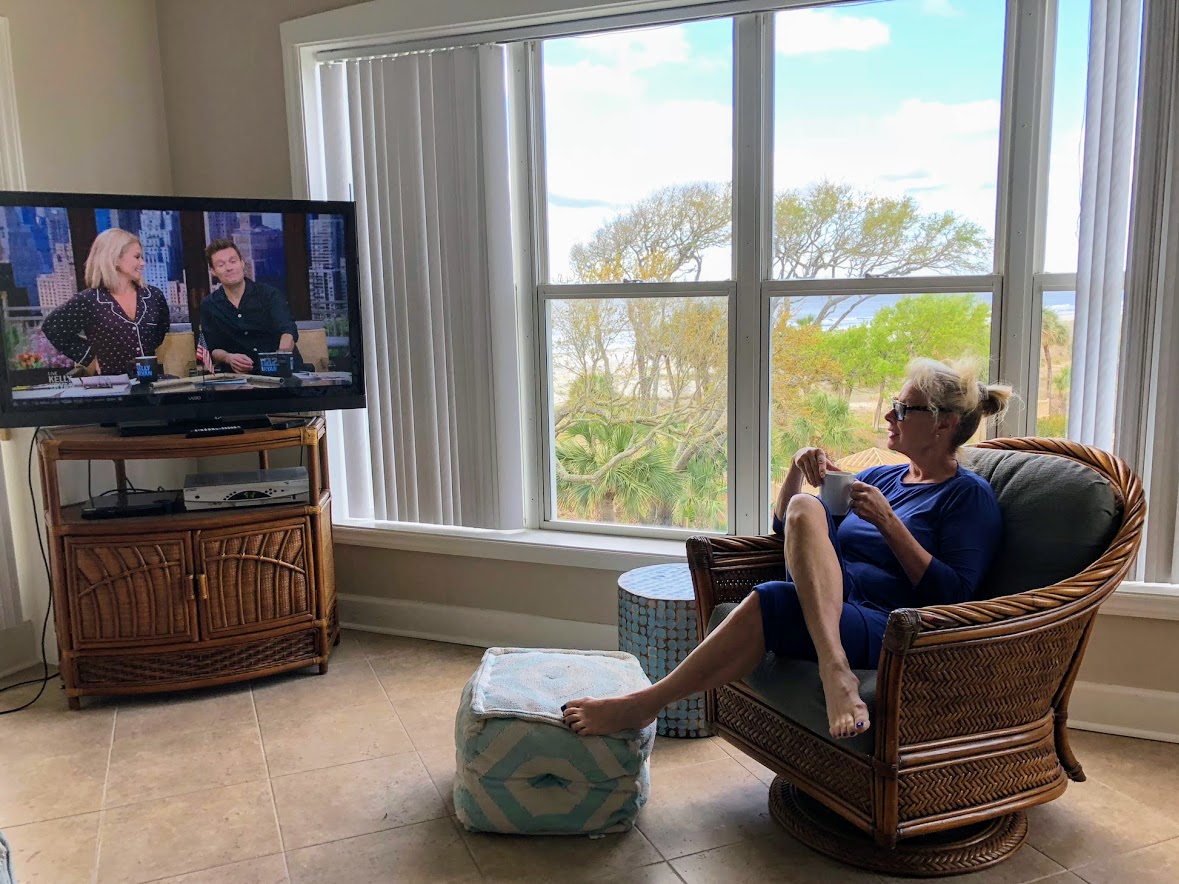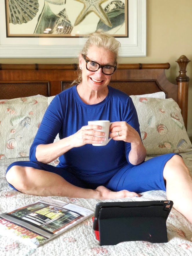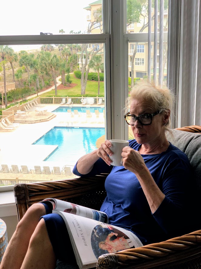 I sleep like a baby when I am in Hilton Head because I exercise every day. I am either walking, riding or swimming every day. Nothing rigorous, but  I am moving which is so important in lowering your blood pressure. I am up before the sunrise, grab a cup of coffee and checked my emails. Then I walk 2 miles every morning with Bruno and Sammy. Because we have to keep Bruno on a leash while at Hilton Head, I walk him 4 times a day and probably walk over 4 miles in a day. We walk the beach and ride our bikes at least twice a week which is something I never do in Atlanta. Hilton Head has bicycle paths everywhere and it promotes a healthy lifestyle. I don’t do any weightlifting exercises but I lose 5 pounds everytime I am at the beach. I also feel invigorated and refreshed by exercising every day.