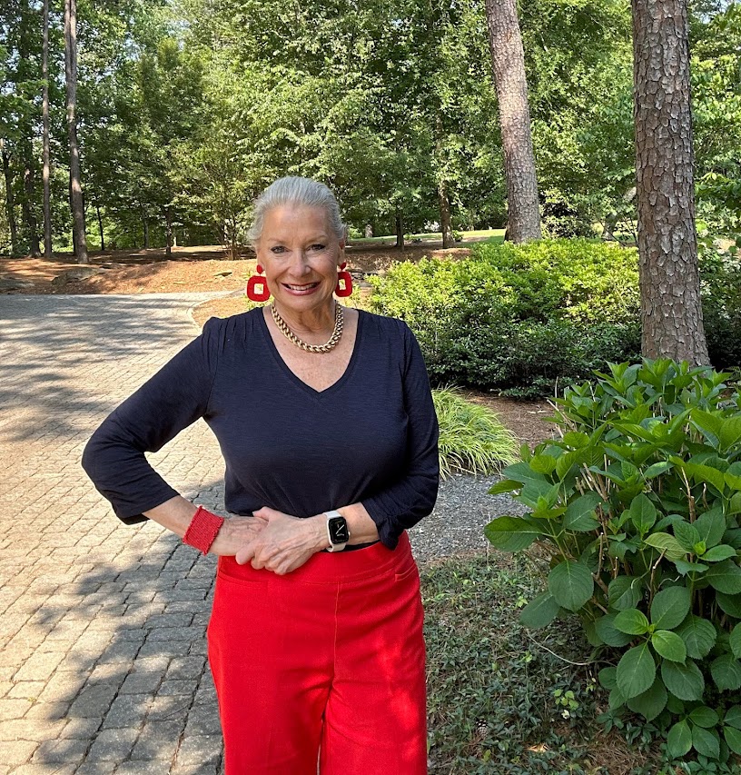 Unfortunately, the red earrings and red cuff bracelet from Chico’s are sold out. My HAMPSTEAD SNEAKERS in WHITE CROC are from Saint & Sofia. Use my code: ROBIN10 to get 10% off your purchase at Saint & Sofia. I’ve linked more white sneakers too.