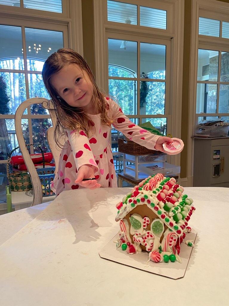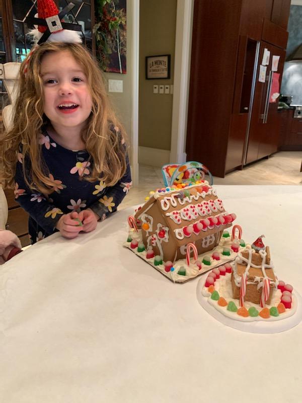 Luckily we had a couple of gingerbread houses left from Thanksgiving to entertain Lucie, Livie, and their parents on Christmas day. My detailed oriented son helped with Livie’s but I love Lucie’s house the best.