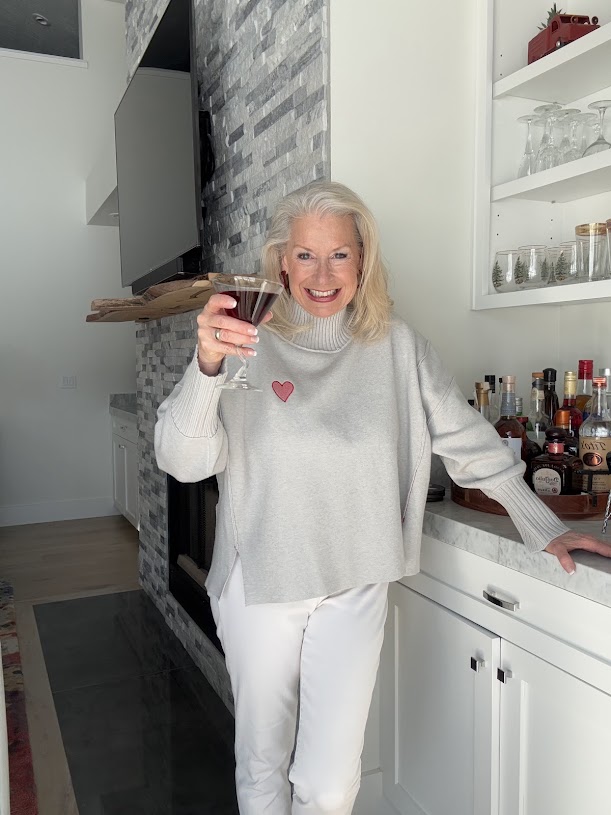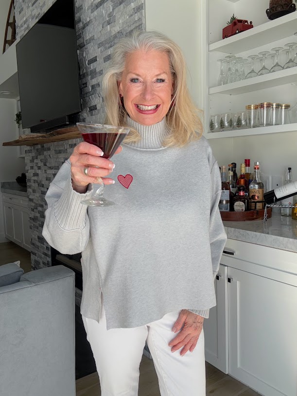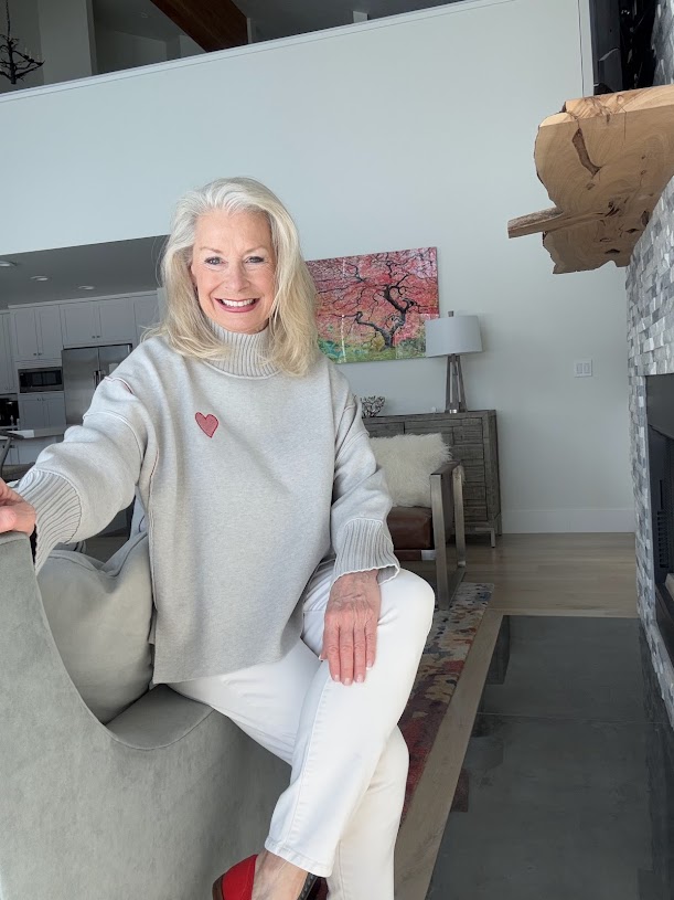 So glad to see colors other than red and pink being showcased for Valentine’s Day. I fell in love with and purchased a kind of rusty orange woven-looking sweatshirt with hearts and will pair it with a red iridescent bead necklace. Sounds like a strange color combo here but the beads kind of have the same color as the top. Anyway, you and I will both be wearing something other than the expected RED!! Your table is lovely. And the flowers echo that pretty coral color of your top. Beautiful.