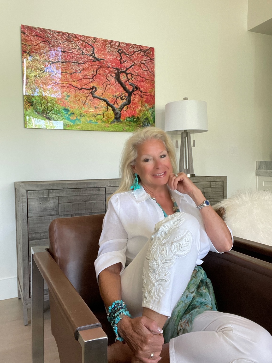 My jewelry is also from Chico’s. I am wearing the Chandelier Fan Earrings, the Seed Bead StatementNecklace, and tMother’sr’s Day Turquoise Bracelet Set.