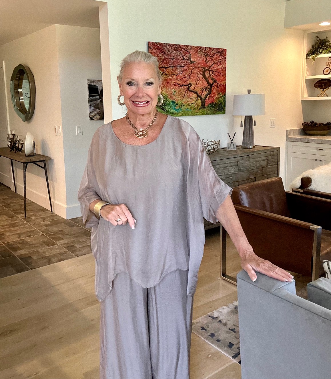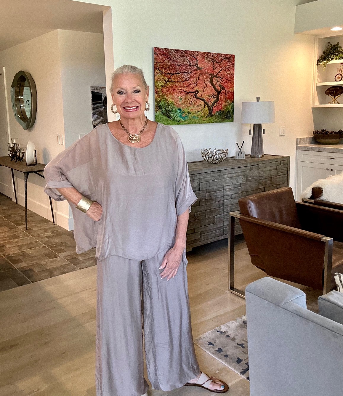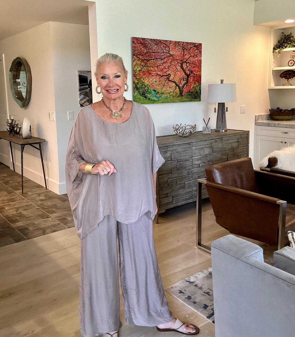 I decided to style this Italian Silk outfit as a monochromatic outfit. But you can easily add a pop of color if this monochromatic style is tooor you. Taupe works brilliantly with intense hues, like fuchsiemerald green, anden, as well as soft pastels. Black and taupe is another great color combination that I will share with you next time from Cobblestone Living.