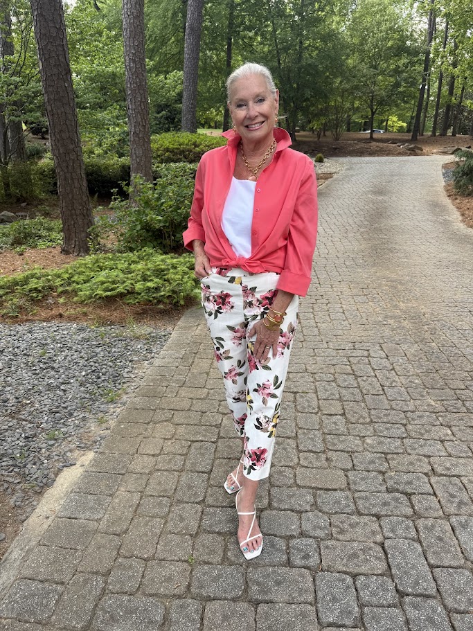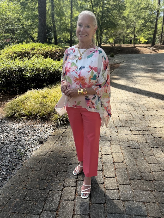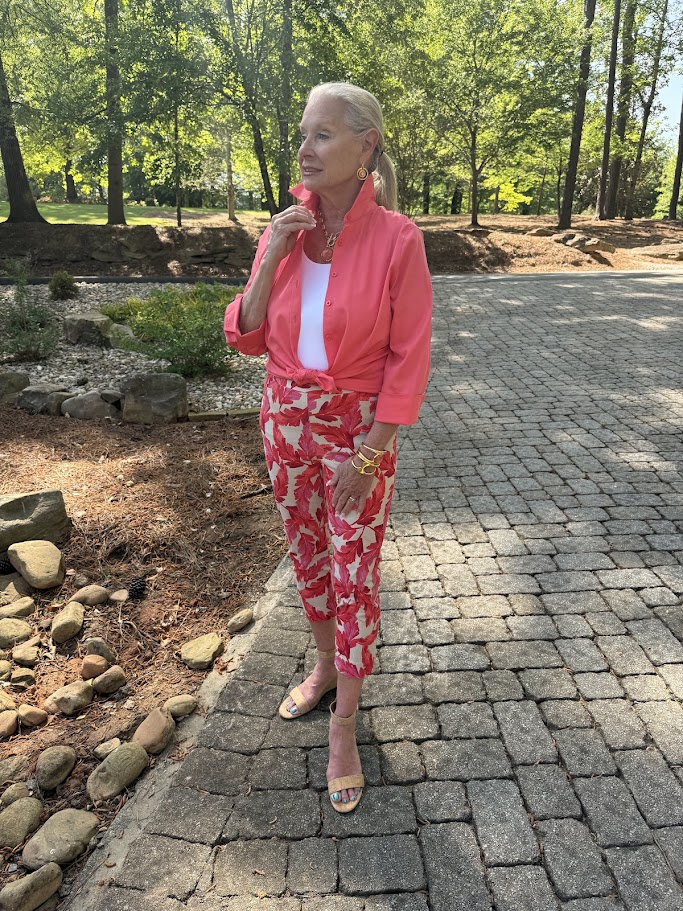 I styled my coral look with a focus on ease and polish—something I always gravitate toward. A beautifully tailored top paired with cropped pants creates a modern yet timeless silhouette. Add a neutral sandal or a metallic accent, and you’re ready for anything from brunch to an evening out.