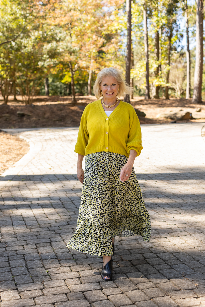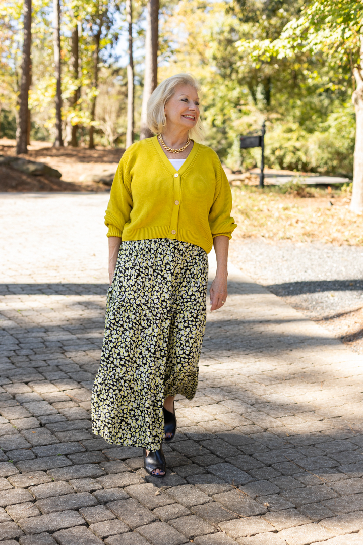 Cropped Cardigan with a Maxi Skirt