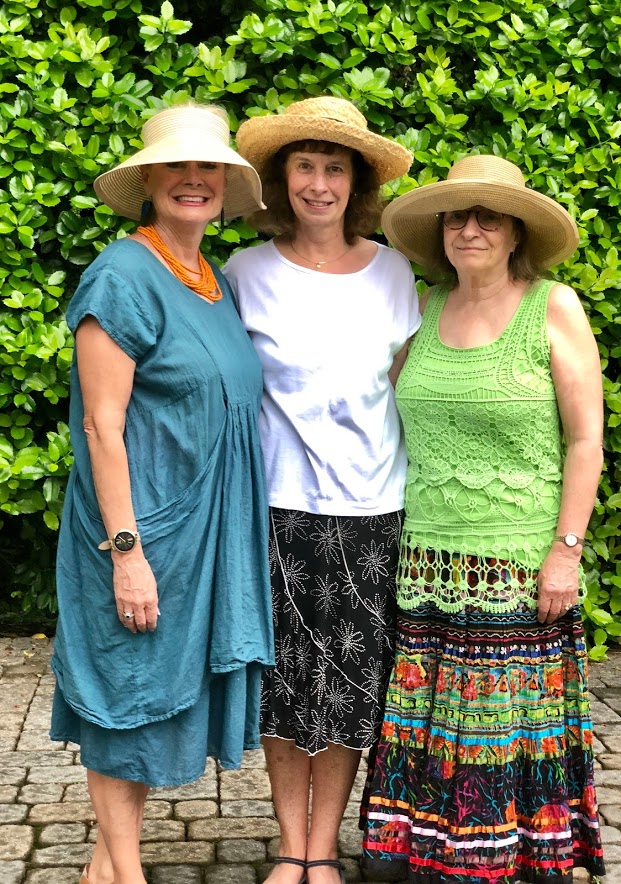 We drove 4 hours to Savannah from Atlanta on Saturday morning, ( morning of the royal wedding) which is why we wore hats on Saturday morning. I suggested we wear skirts and dresses ( boho-chic style) for the 2 days because of the southern heat. The hats were mine, so my cousins are not wearing their preferred style of hats.
