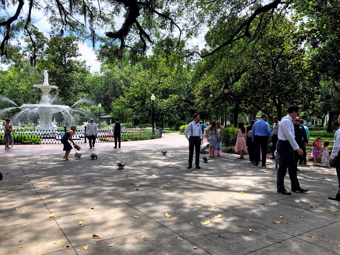 We saw about 5 bridal parties in the park on Saturday afternoon. The park is the premier location for a wedding in Savannah because of the famous fountain in the center and all of the live oaks. Because of its popularity, people need to book it in advance and there are plenty of wedding planners in Savannah to help you.