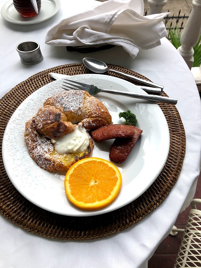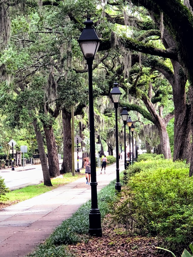 Every day we sat on the veranda of the inn for our morning coffee and breakfast. We enjoyed watching all the people exercising around the park and some were playing catch with their dogs off leash. Inns are more intimate than staying at a hotel in Savannah, ( I’m sure the hotels are lovely) because of the close proximity of the sitting arrangements. You can spread out in a hotel, but not in an inn. Plus I love visiting with people and learning about why they came to Savannah.