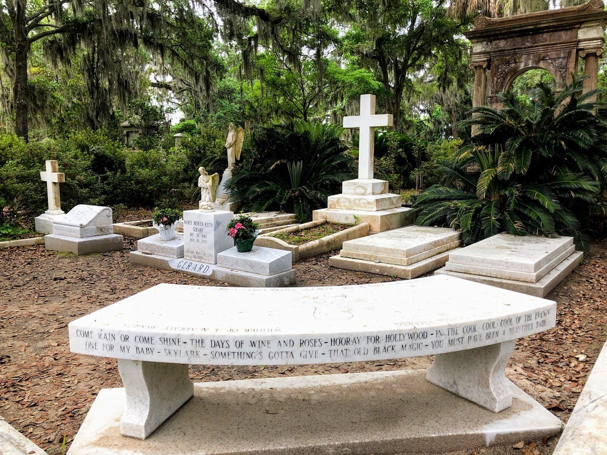 Johnny Mercer’s Burial site. You can see some of his songs etched into the marble bench.