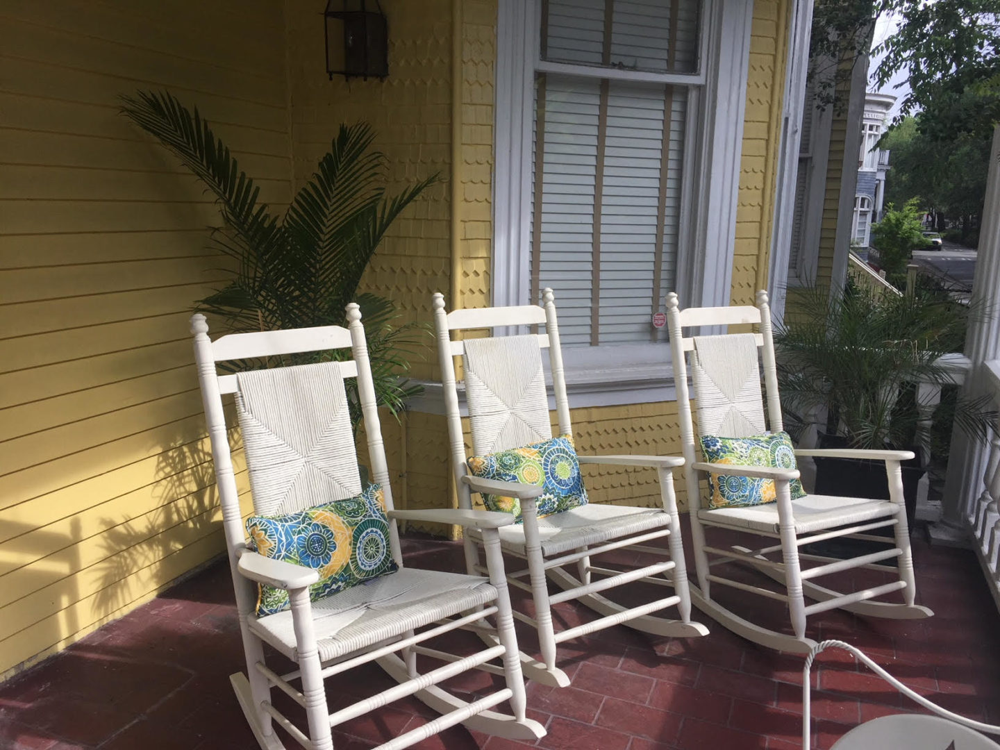 We always returned late afternoon after exploring Savannah’s historic district in time for a glass of wine and good conversation while rocking. We watched from the veranda weddings in the park, some guy dancing by himself, and 4 people acting out animal movements in front of us. It was like being a part of the Midnight in the Garden of Good and Evil with our own cast of characters!