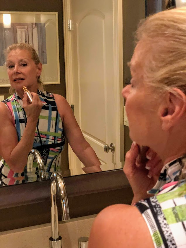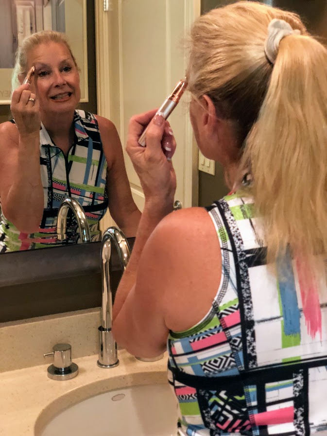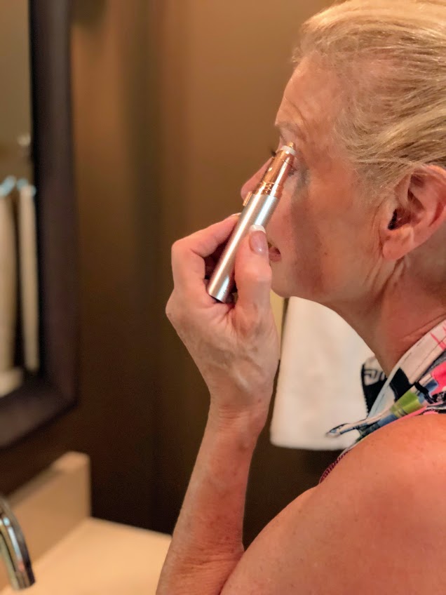 This little wand can be highly addictive because I was so happy watching my chin hair disappear that I could have run it all over my face, which is not a good idea. I believe we should target the unwanted hairs and not the peach fuzz that also comes with the loss of estrogen.