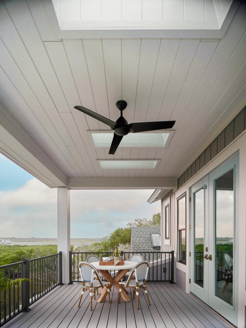 Sunset views and soothing waters surround the backyard of the HGTV Dream Home 2024. With multiple spaces to eat, live, and play outdoors, this home embraces coastal living in every way.