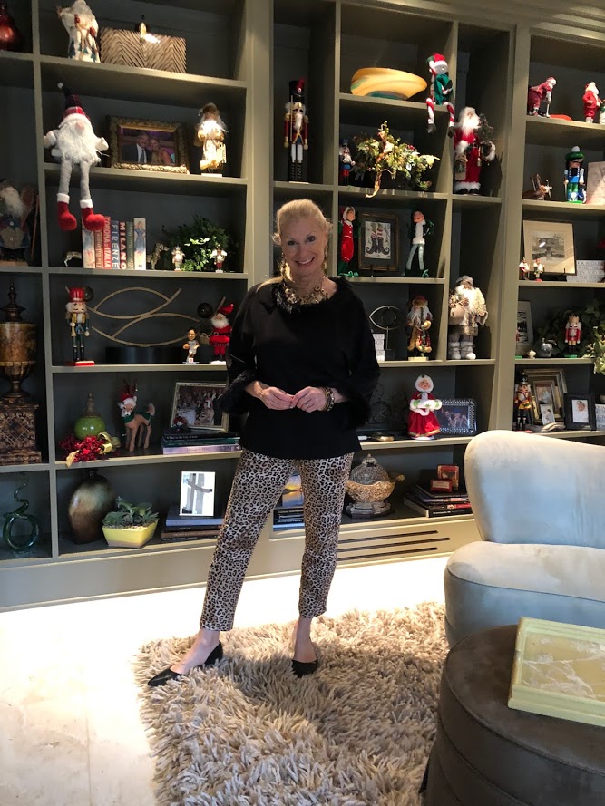 I am wearing myĀ leopard print jewelry and pants that I wore this fall with the fauxĀ fur trimmed top from 2 years ago as a new holiday fashionĀ from my closet.