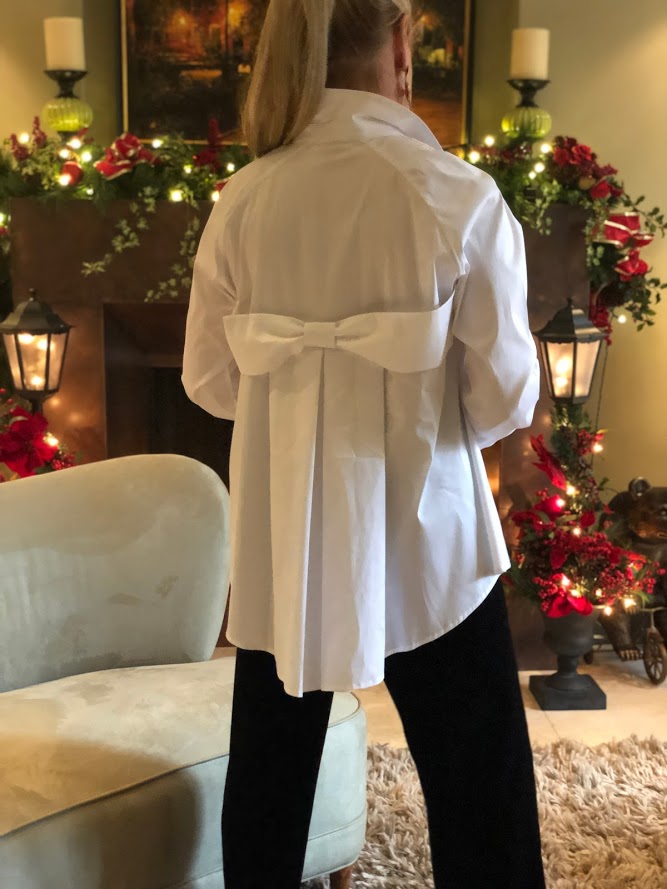 Happy day, Robin! Love the bow detail on the white blouse, and LOVE the leopard! It amazes me that people will head to the mall before heading into their closet… And I see the results of that behaviour every time I do a Wardrobe Audit. Oh, my! Take the holidays in stride, and enjoy.
