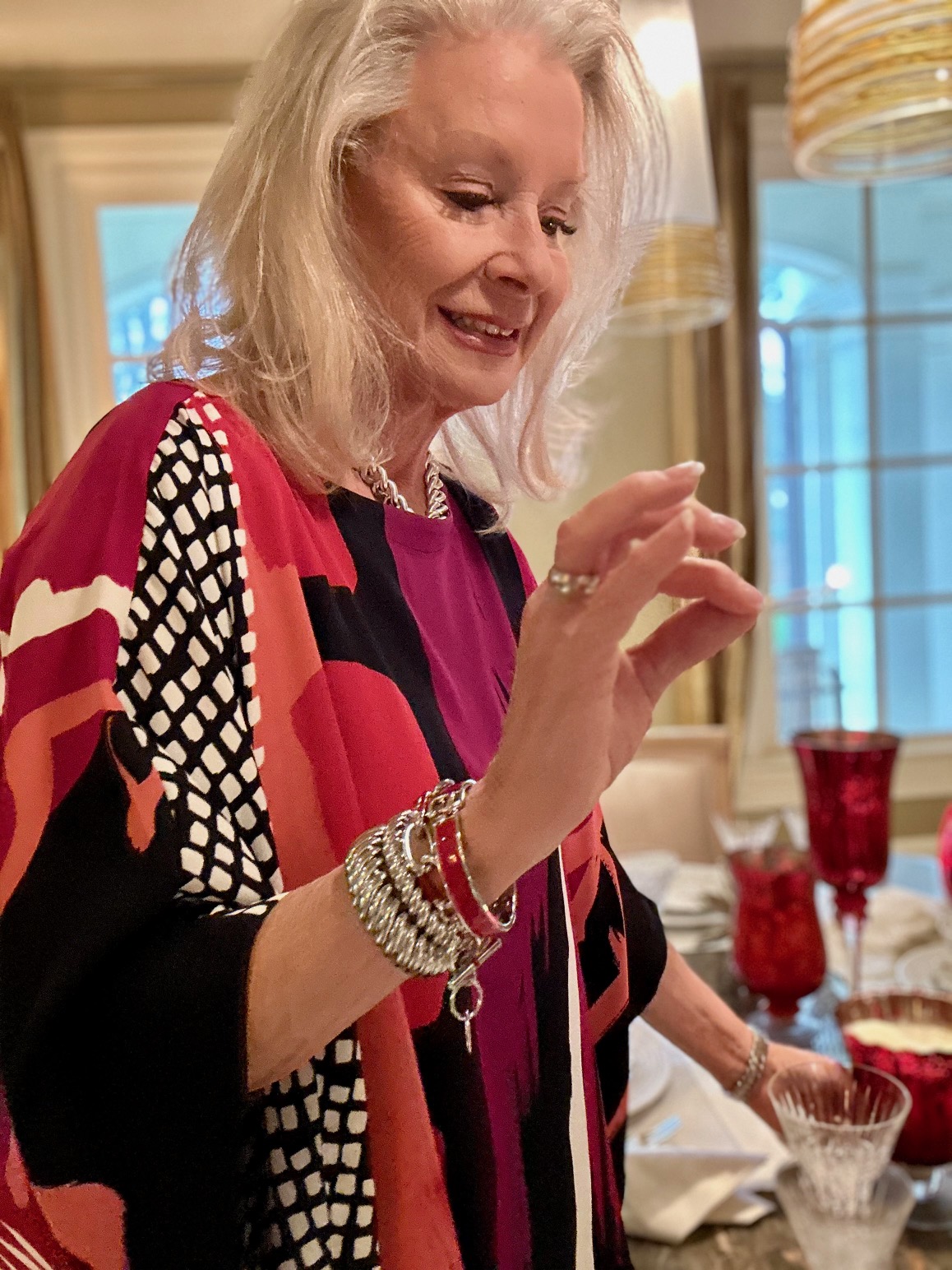 This month, I have been working with Chico’s to introduce their newest arrivals. I am wearing the new EXCLUSIVE Click Bangle since it’s only offered at Chico’s and nowhere else! This upscale accessory features a pop of red and a Chicos CC accent, plus a lock-in-place closure that’s easy to wear. Wear it with special occasions or casual looks. It also comes in three other colors. I added the Silver Tone Stretch Bracelet Set and the Red Link Bracelet to make it a bangle party!