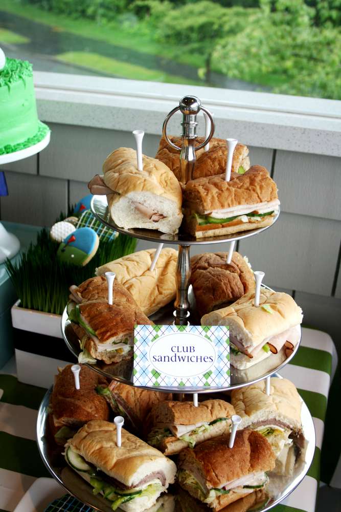 Use new golf tees to hold appetizers or “Club” sandwiches together like this photo.