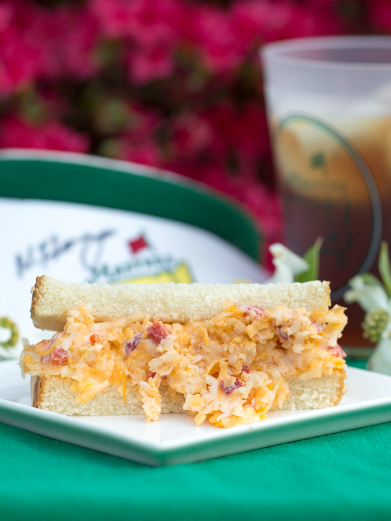 There is some traditional Masters food served at our party every year. We serve lots of appetizers and finger foods at our party. Someone always brings the Masters pimento cheese sandwich and egg salad both served on white bread, for our party. The main course is salads, sandwiches, and southern barbecue. Dessert is served by the 16th hole in the final round because everyone leaves immediately after the green jacket ceremony.