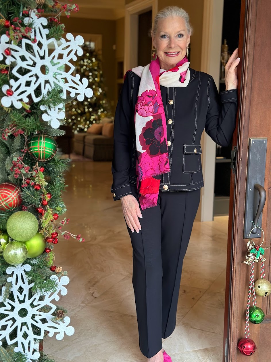 I am sure that you have many pantsuits in your closet, but let me tell you how fabulous this Iconic Ponte Jacket and Pants from Summersalt are. It is a complete game-changer. Iconic style in comfy, polished ponte knit. This update to the classic jacket is a day-to-night fave with sleek tailoring, lustrous buttons, & functional front pockets. Even my photographer said, “Wow!” when she saw me in this outfit.