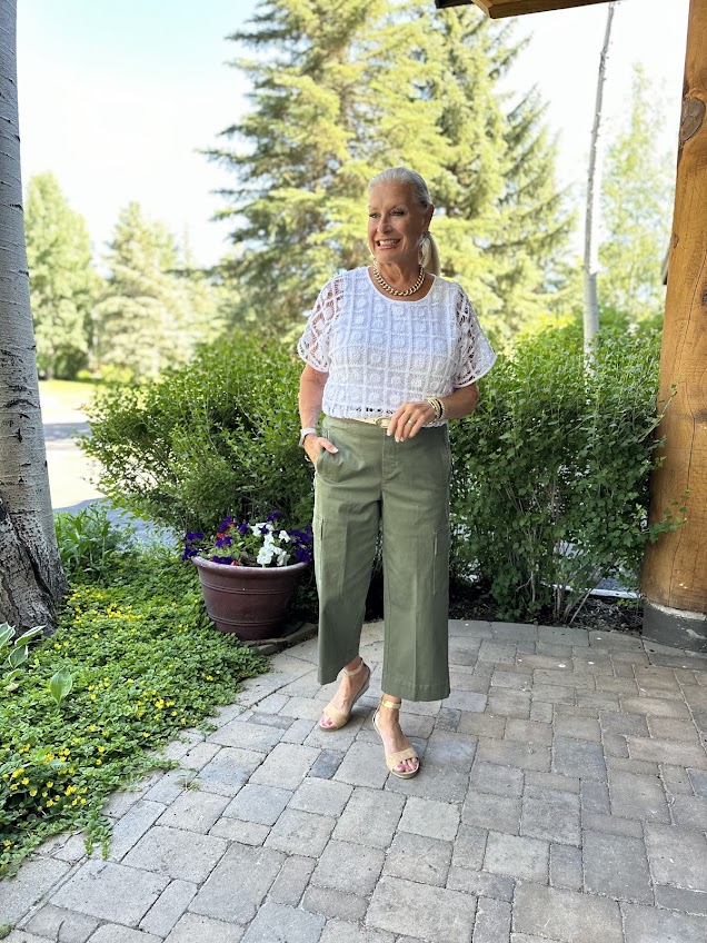 The Crochet Top with Chico’s Cargo Wide Leg Cropped Pants