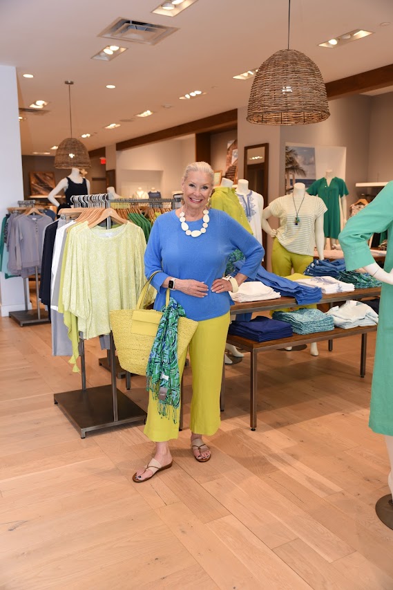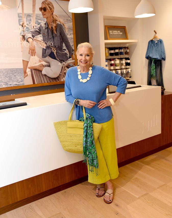 This time I’m wearing this beautiful cyan blue sweater to go with the linen-cropped pants. This is a beautiful color combination for summer. I added the Seaside Oasis Mixed-Shapes Necklace to wear with the sweater. It really popped against the sweater, didn’t it? You see me wearing this sweater again soon! I’m taking it with me to Park City for the summer as well as everything you see today on this post.