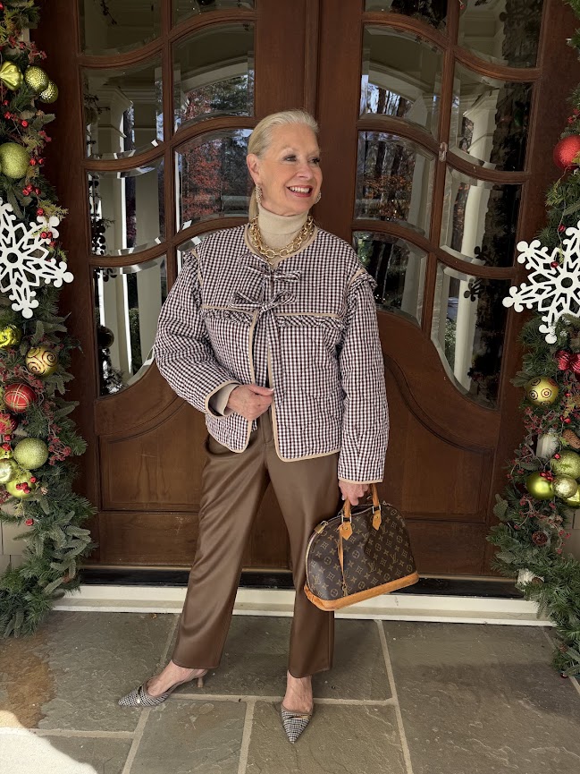 It’s timeless, chic, and works beautifully in winter—especially in places like Park City, where style is understated and practical. Black-and-white plaid paired with great boots and a cozy knit feels intentional, not festive.