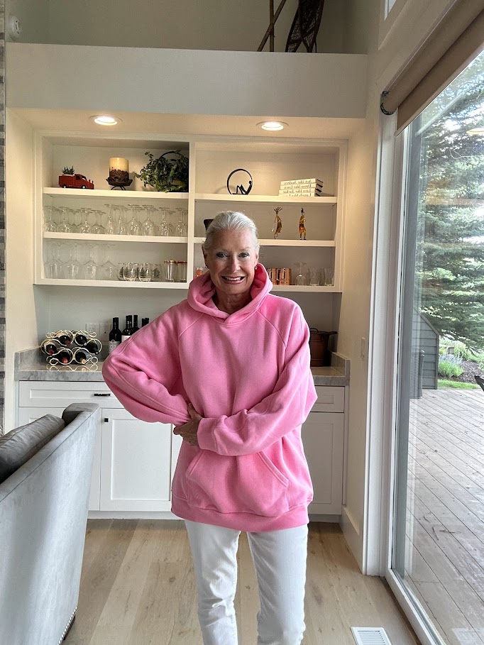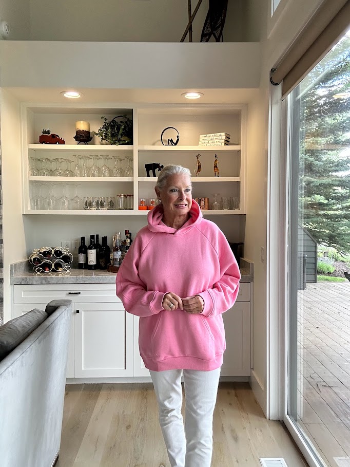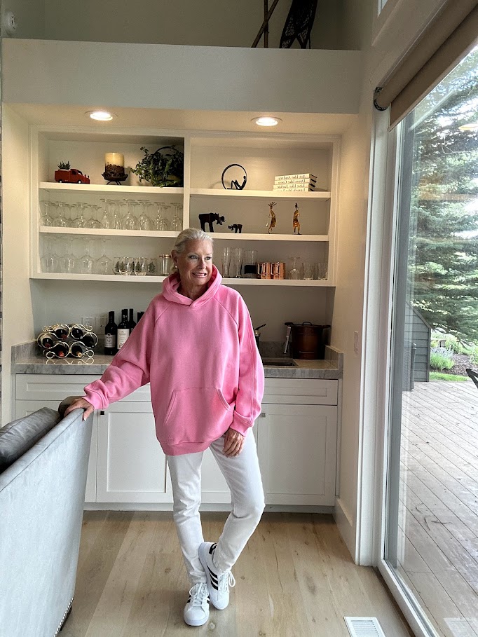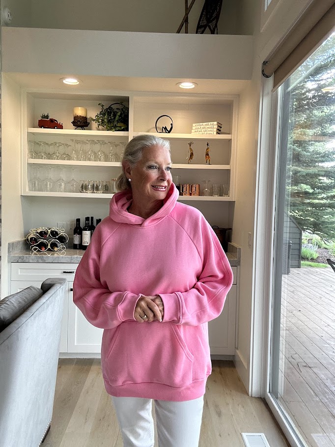 This Fleece Boyfriend Hoodie is such a pretty shade of pink. The hoodie is so warm and comfortable and I love the front pocket! Unfortunately, the pink hoodie has sold out but comes in two other colors that are still available. I am finding that I need to share my clothes immediately with you otherwise they may be out of stock. I received the sweatshirts back in September but now they are out of stock. Pink is such a popular color that I can understand why this color is out of stock for the hoodie.