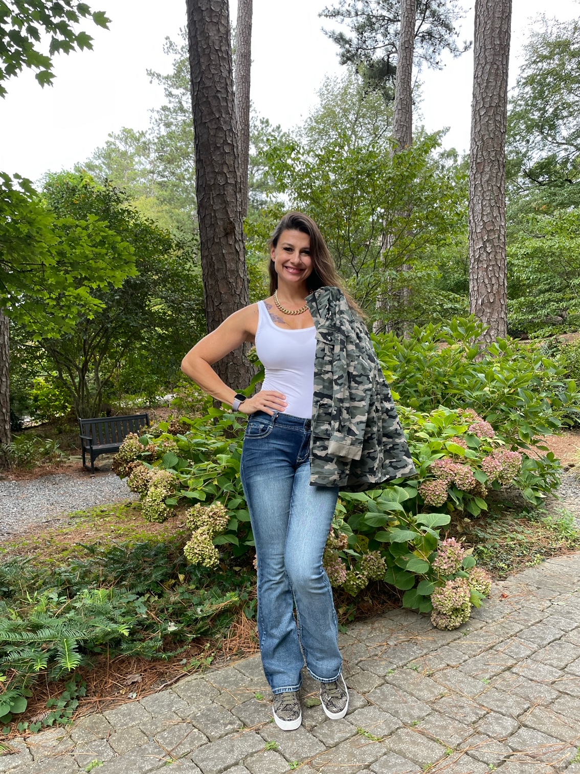 I’m not done wearing a white tank top! It’s easy to wear with almost everything in your closet for fall!