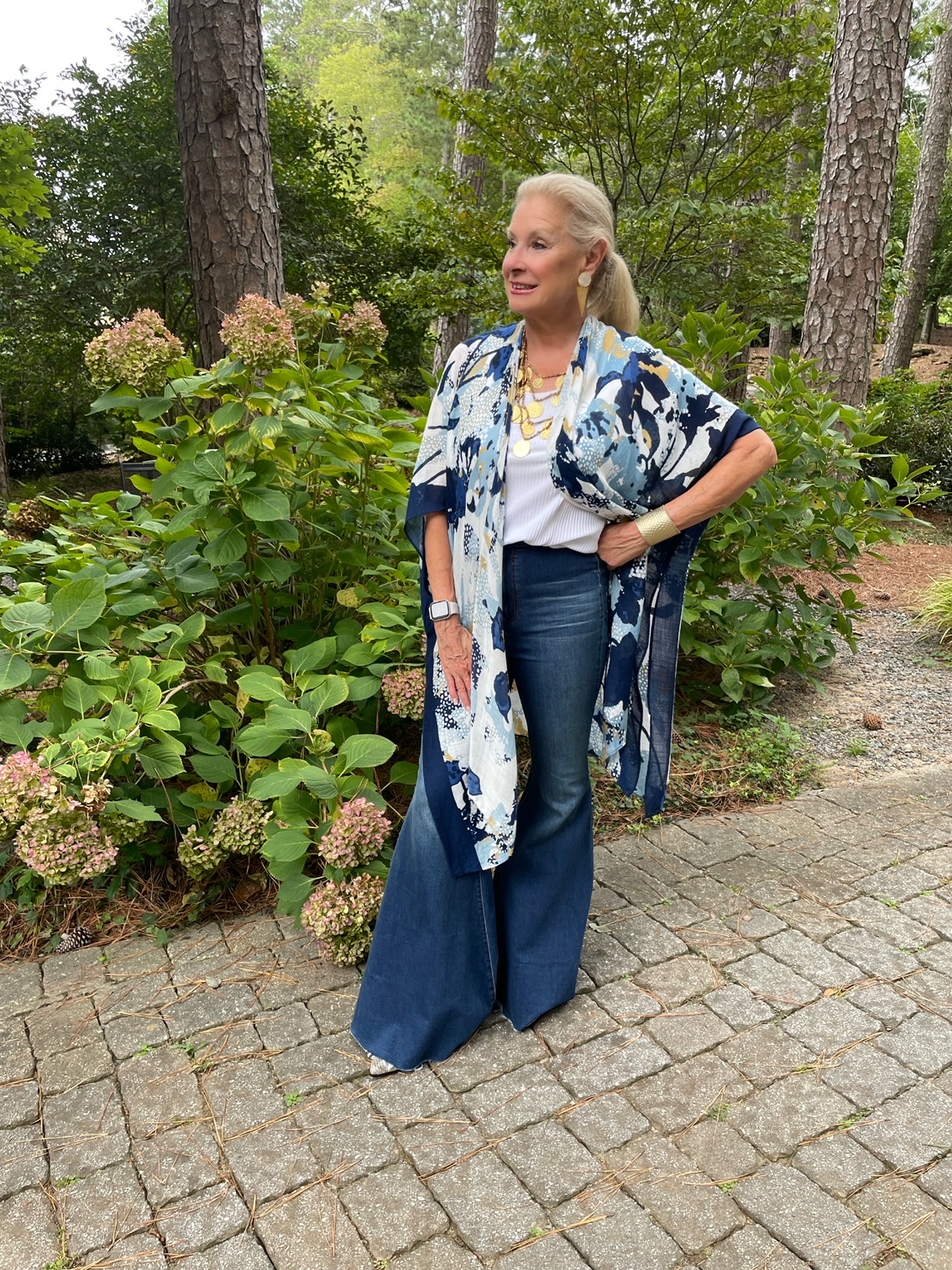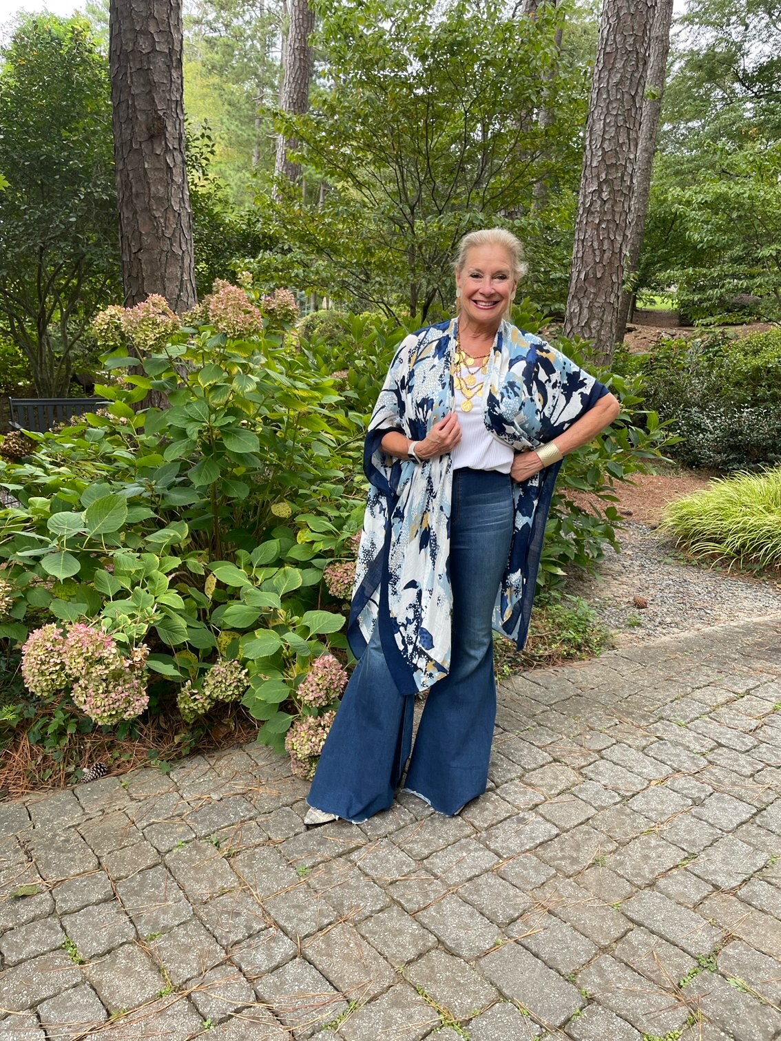 You saw this beautiful kimono in this post. Unfortunately, it’s no longer available, but I have linked some of my favorite kimonos at the end of this post. I love wearing a flowing kimono with jeans. Kimonos upstyle jeans.