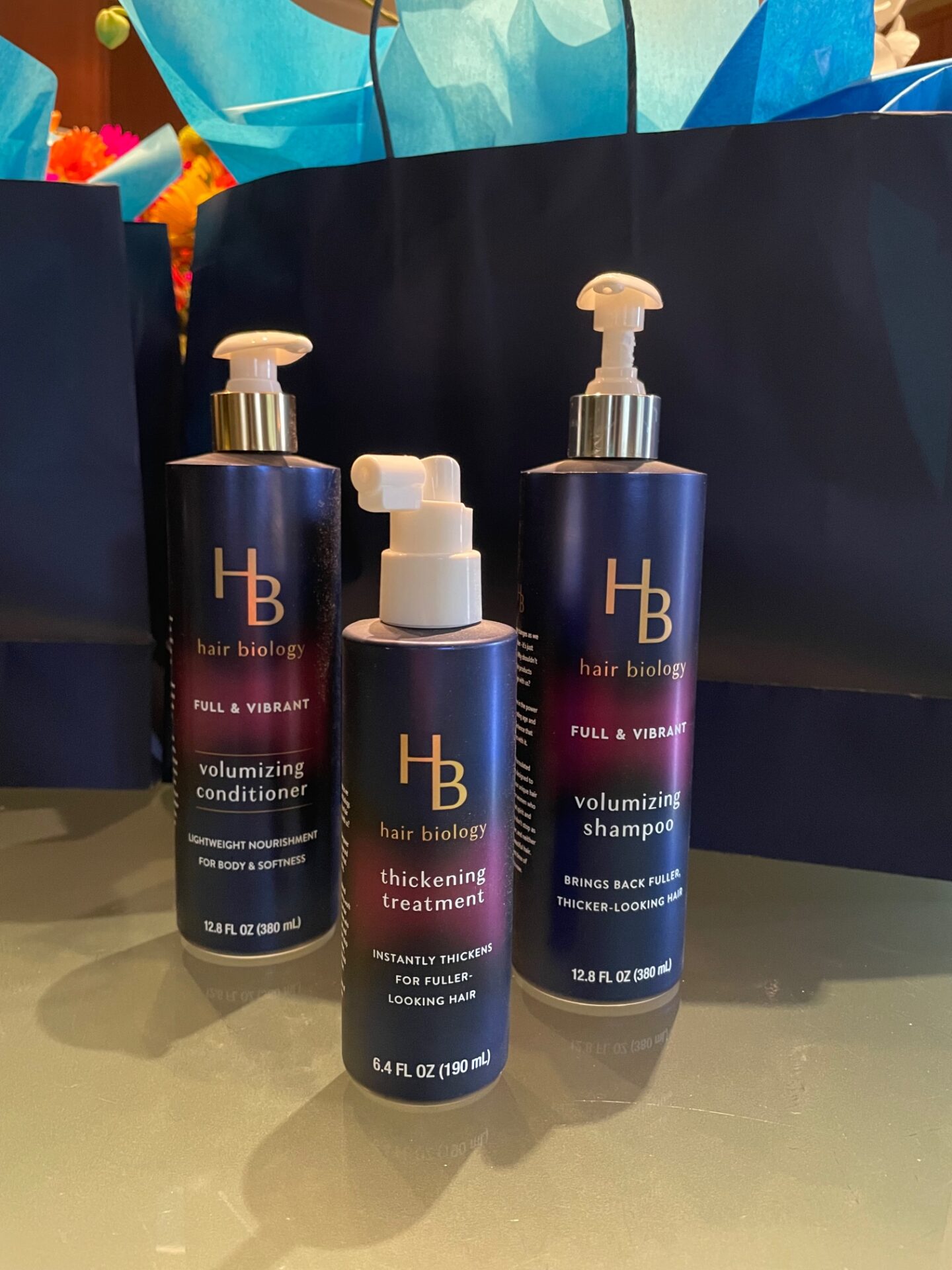 I have been honored to be a brand ambassador for Hair Biology for over a year now. Their products are designed for over 50 woman’s changing hair. Not one person who works with Hair Biology is under 50!