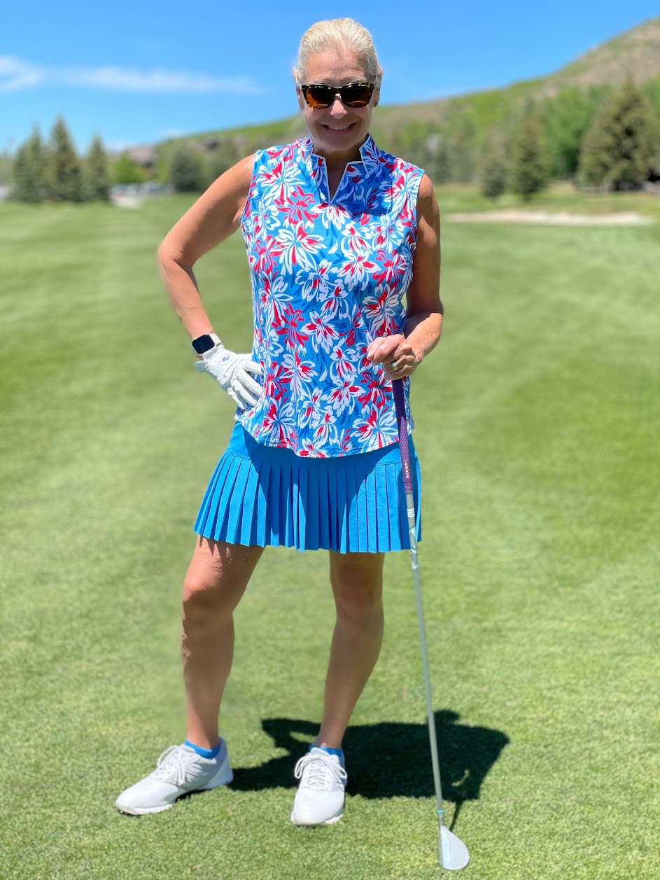 We’ve had beautiful sunny days in Park City, so I’ve been golfing a lot. However, I still play only nine holes with my husband and friends. So today, I am sharing Rum Punch, the latest collection from Jofit. My girlfriend loves how stylish I am on the golf course!