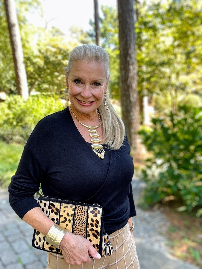 The leopard print clutch and jewelry are also old and from Chico’s.