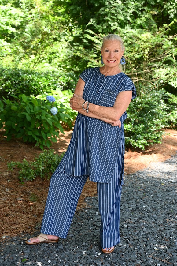 I really like this Serefina Long Tunic and the Serefina Wide Leg Trouser for a fun matching set. The Serefina Long Tunic showcases high side slits, a double back yoke, deep pleats and a horizontal stripe patch pocket.