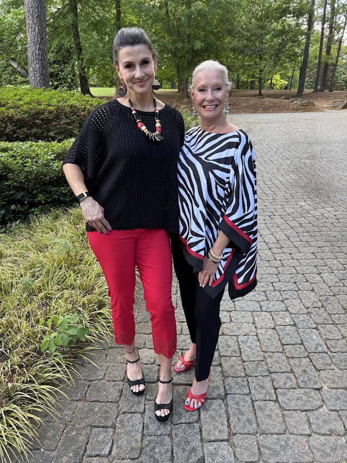 Lisa is 5’11” and in her late forties, and her athletic lifestyle definitely influences her style. She dresses quite differently from me, which made this collaboration especially fun—I loved seeing what she gravitated toward. Her taste leans toward clean, solid pieces, while I’ve always been drawn to bold patterns and statement jewelry.