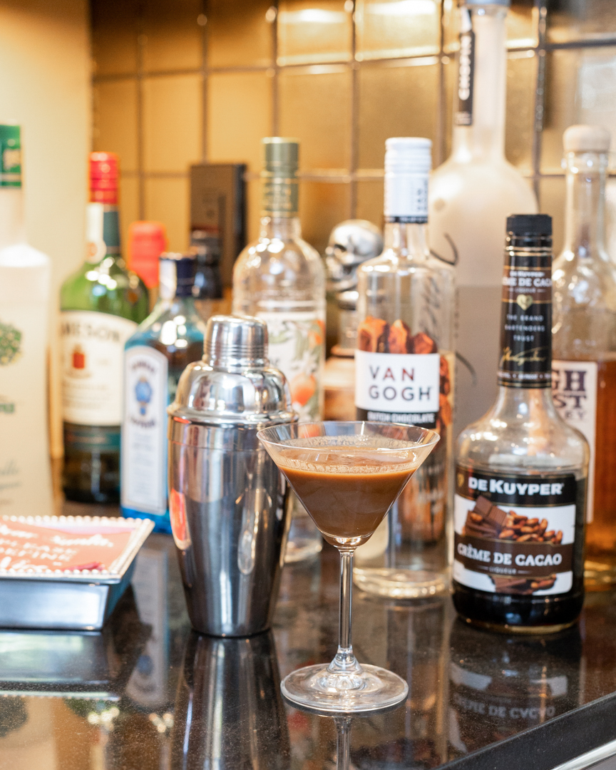 Strain drink into prepared glasses. You may also garnish with shaved chocolate to enjoy as is.