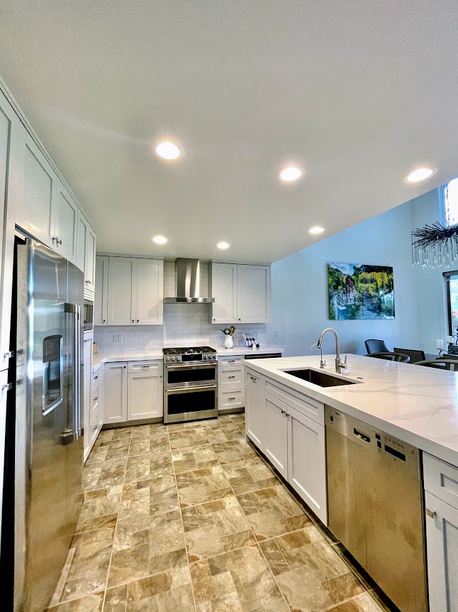 The ceramic tile floor is from Floor & Decor. We saved the Bosch dishwasher and will replace it when it dies. The Cafe refrigerator is counter-depth. I also selected the Café™ 30″ Smart Slide-In, Front-Control, Dual-Fuel, Double-Oven Range with Convection for baking and cooking.Home Renovation in Park City -Hello I'm 50ish
