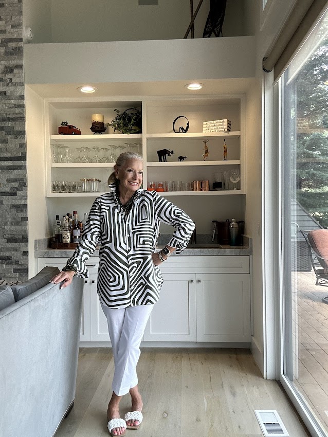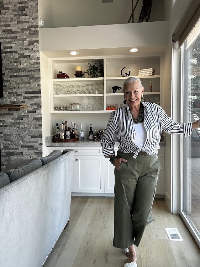 I am wearing the Brigitte Slim Cropped Pants in Alabaster with the tunic. The pants are now $49.00! So many pieces that I am wearing today are now on sale!